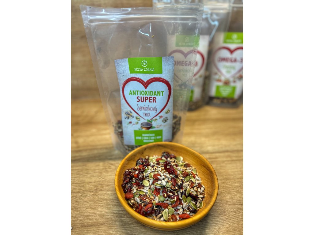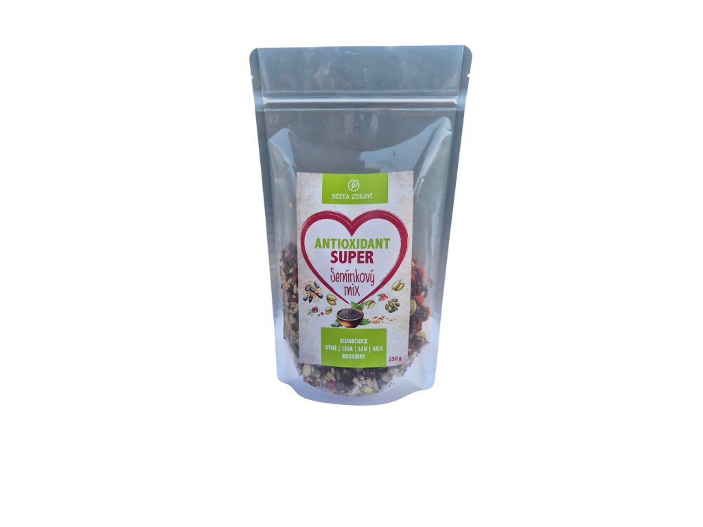 Složení: směs semínek v různém poměru 60% (slunečnice, dýně, len zlatý, len hnědý, chia) a směs ovoce v různém poměru ( brusinky klikva (brusinky, cukr, slunečnicový olej) a goji).