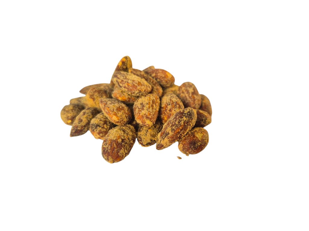Složení: pražená jádra mandlí 90 %, směs koření s příchutí hořčice 6,5% (sůl, cukr, hořčičné semínko, cibule, česnek, kurkuma, pepř, aromata, regulátor kyselosti: E262, kyselina