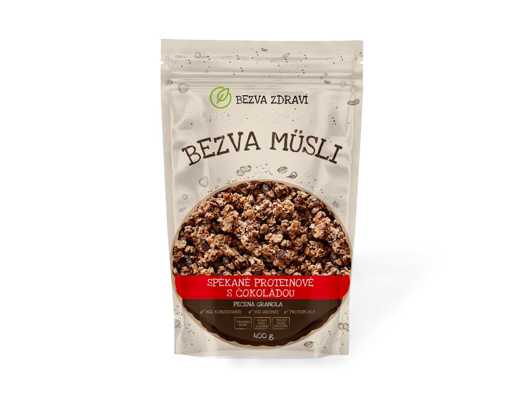 Do křupava pečená směs ovesných, sojových vloček, proteinových křupek a čokolády. Ideální jako přísada k oblíbeným vločkám, do jogurtu.