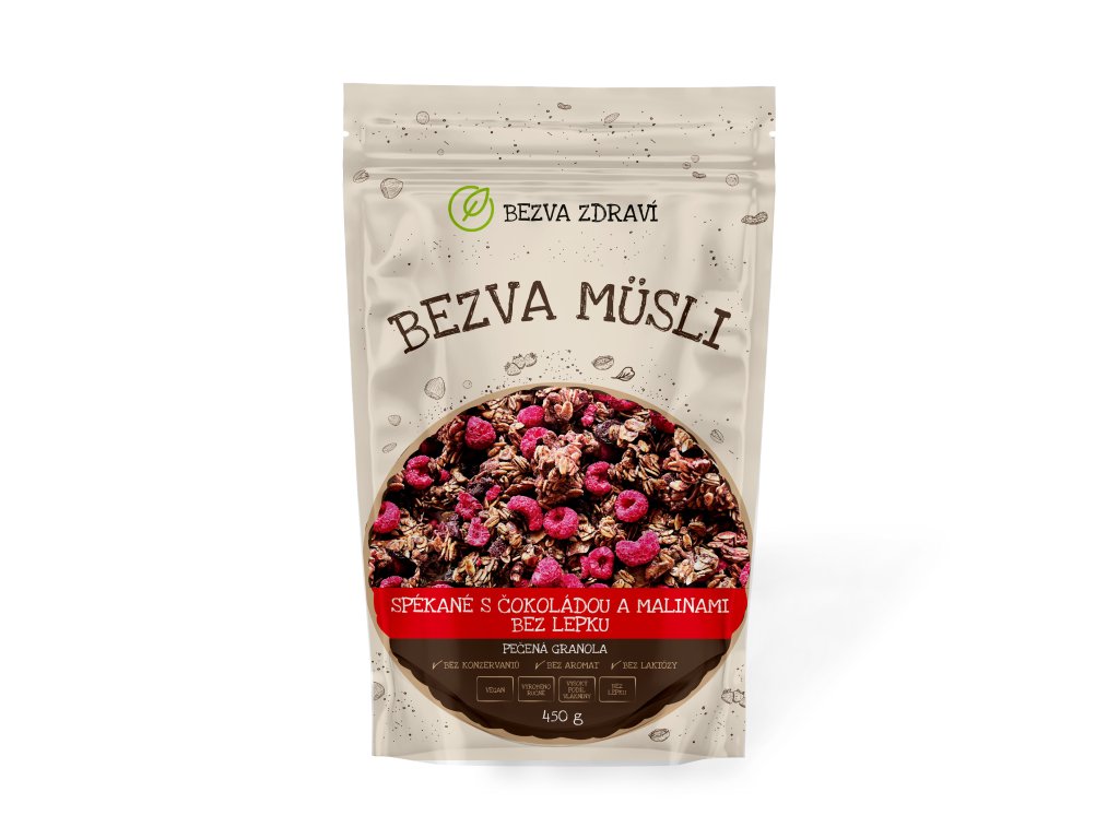 Bezva müsli granola Spékané s čokoládou a malinami bez lepku 450g
