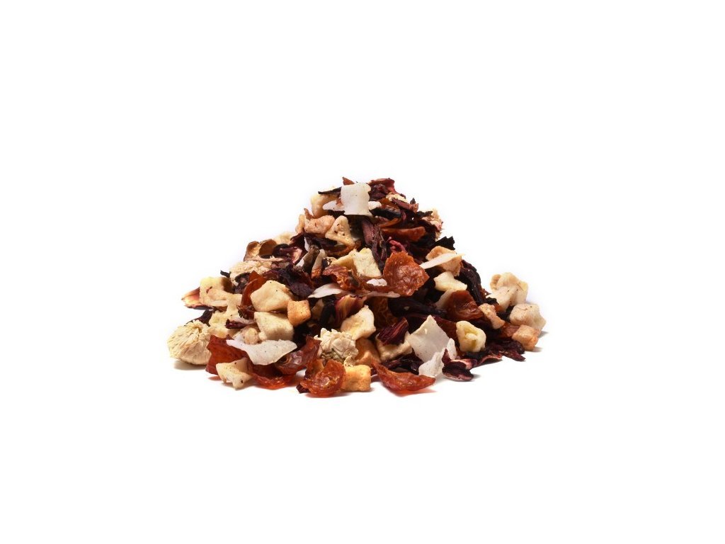 Složení: Ibišek květ, šípek plod, jablko plod, kokos chips,heřmánek římský květ, cukrové vločky, aroma.