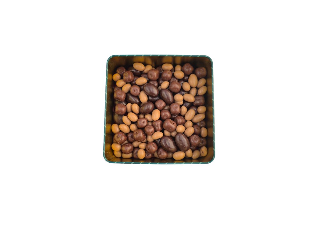 Vánoční plechová dóza se směsí ořechů v čokoládě 400g