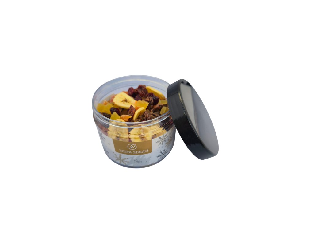 Praktická dóza s vánočním motivem obsahuje směs sušeného ovoce.