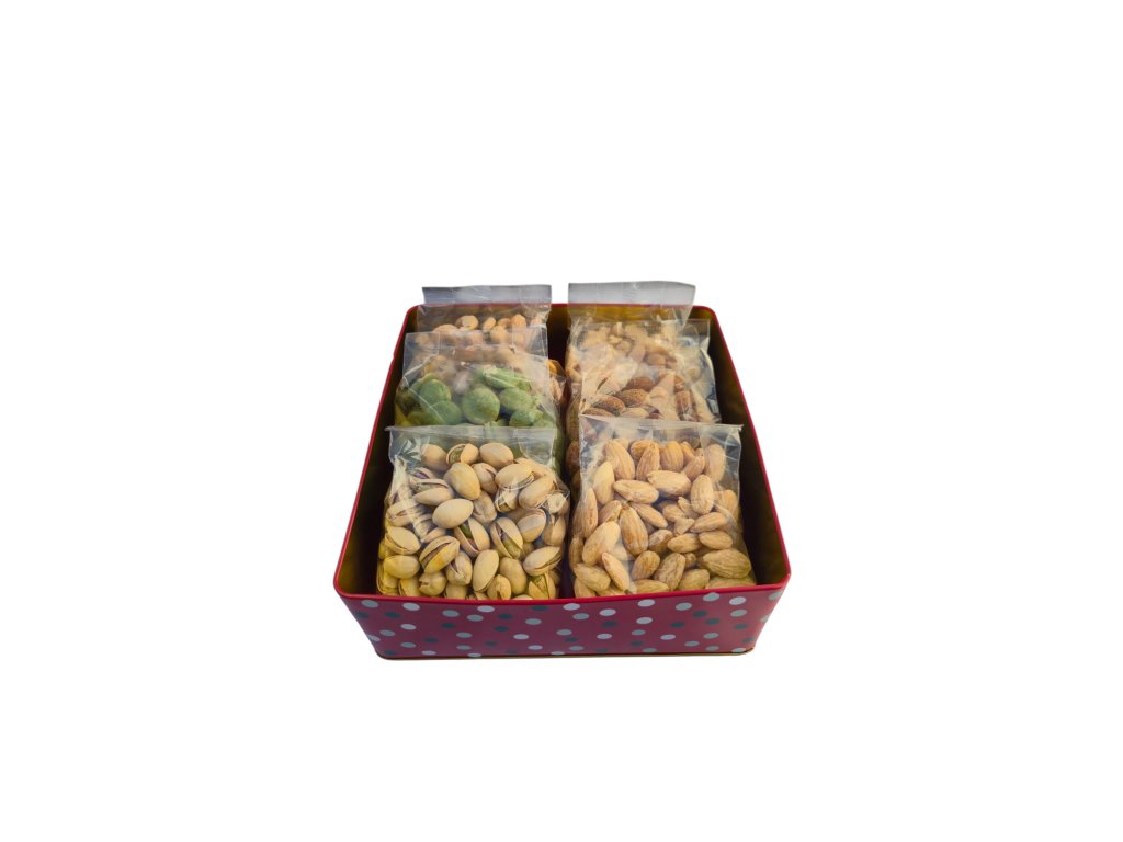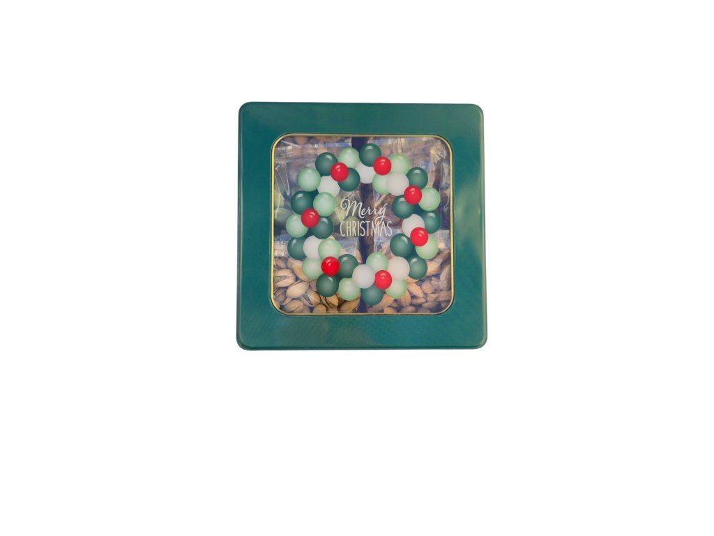 Vánoční plechová dóza se slanými ořechy